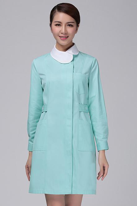 90年代的护士服是长款斜襟的,稍稍收腰身,样子很漂亮。那时候工作服是要自己洗,上班配药时不小心药液溅到大褂上很难洗掉,所以很多护士的工作服,时间长了就都是药渍、污迹斑斑,很难看。2000年以后,护士服改成了长款直襟,面料很好,穿出来很挺括、很精神。到了2007年,医院成立了洗涤中心,开始集中清洗护士工作服,结束了护士自己手洗工作服的历史。洗涤中心洗出来的工作服干净,还兼熨烫功能,护士服穿在身上更漂亮了。2013年,为适应护士服发展改革的形势,医院为广大护士更换了新工作服——分体服。分体护士服很好地考虑了护理人员职业的特点和工作的需求,由长款变成了上下分体服,方便护士操作,设计更加合理,穿出来更精神、更漂亮,受到了广大护士的喜欢。